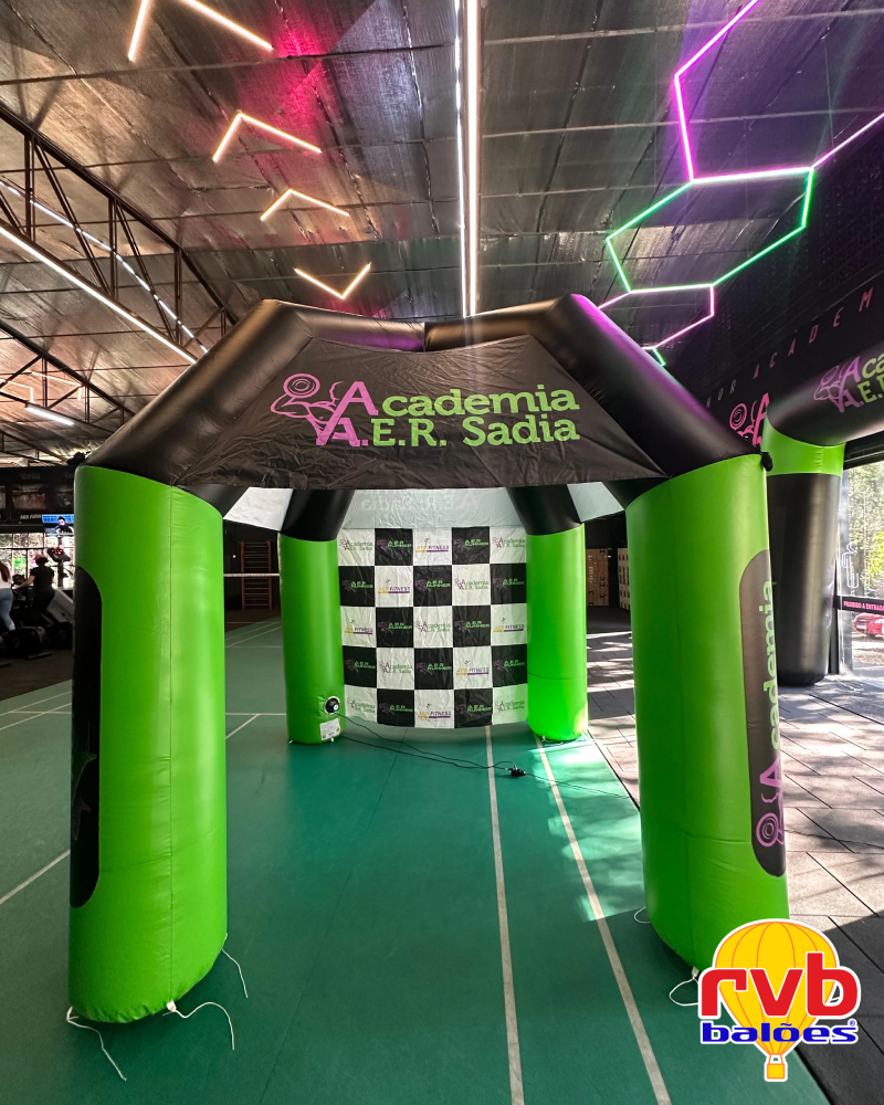 - Portais infláveis: ideais para destacar a entrada do evento, sinalizar largadas e chegadas em competições ou criar pontos estratégicos de referência.
