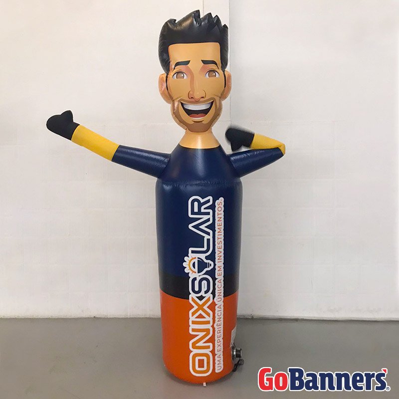 Também chamado de mascote inflável, o boneco inflável é um tipo de inflável promocional que tem formato lúdico, remetendo a um boneco ou personagem. Pode ser o mascote da marca, uma figura que simboliza o produto ou até mesmo um desenho personalizado.