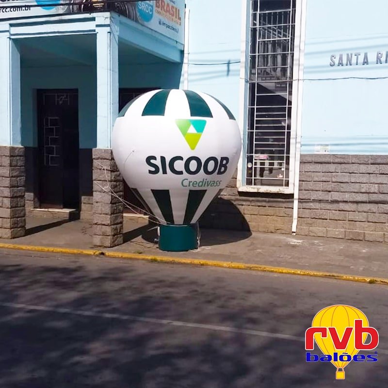 O balão inflável possui o formato de um balão que permanece fixado no solo. Ele consegue atrair a atenção das pessoas, principalmente quando colocado nas fachadas ou em eventos externos.