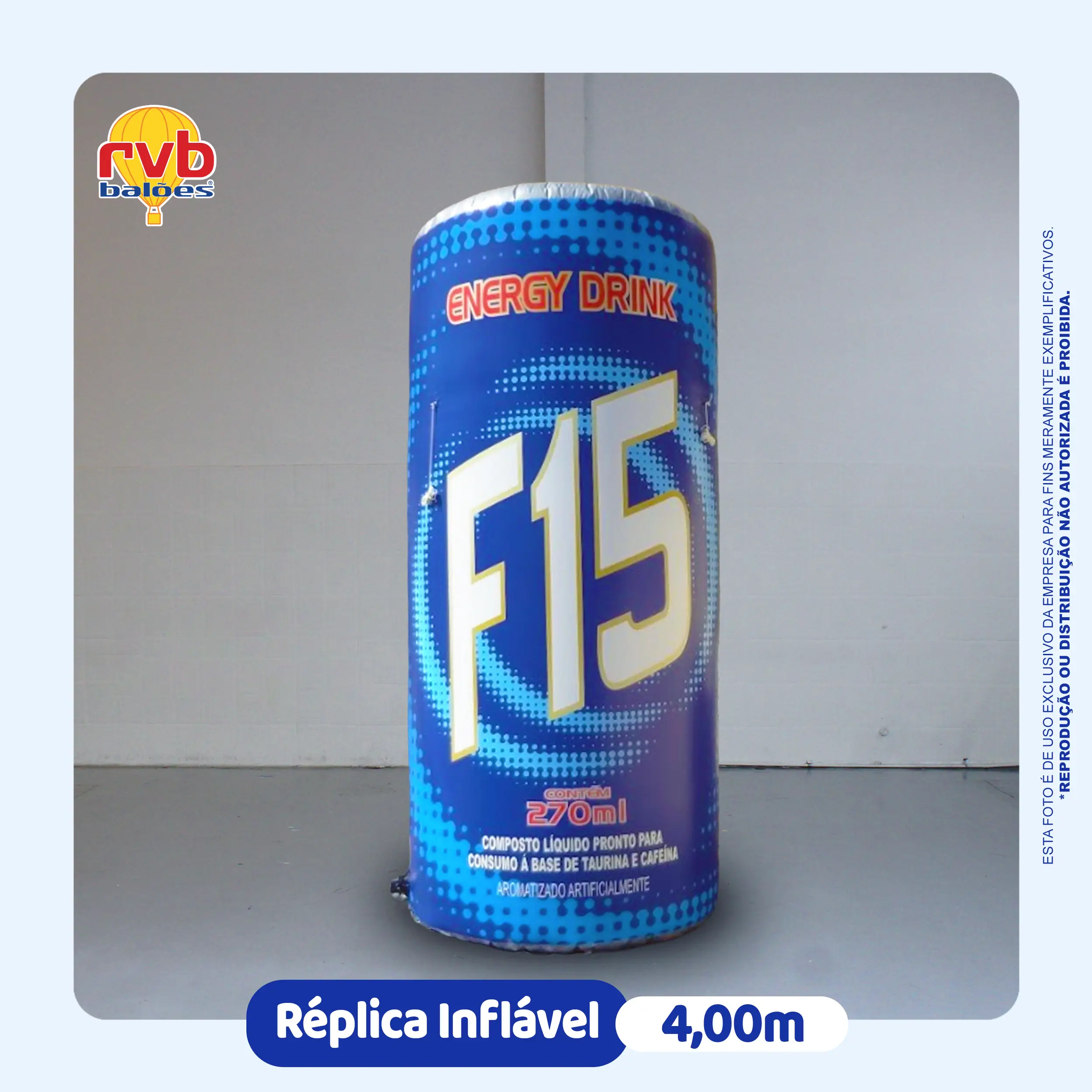 Uma réplica gigante da sua lata de energético é um ponto de parada obrigatório. Ela comunica instantaneamente o que você vende, reforçando a identidade visual do seu produto. Pense no impacto visual de uma lata de 6 metros de altura em um festival de música.