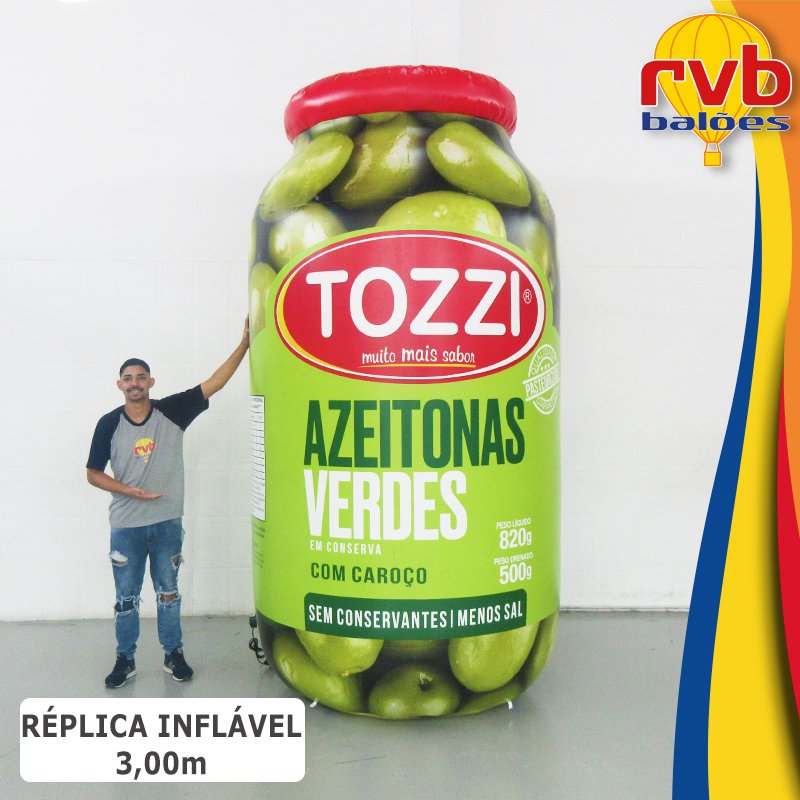 Réplicas infláveis de produtos, personagens ou logotipos da marca são muito eficazes para destacar um produto específico ao lado das prateleiras ou reforçar a identidade da marca no PDV.