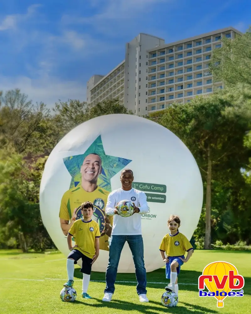 Futebol é paixão, energia e diversão! Os infláveis conseguem comunicar tudo isso de forma brilhante. Um campo com mascotes infláveis ou talvez até uma réplica de troféu gigante, transmite a mensagem de que sua escolinha é um lugar onde a diversão e o esporte andam juntos. Essa associação com momentos alegres e o profissionalismo do universo esportivo eleva a percepção da sua marca, tornando-a mais atraente para pais que buscam um ambiente estimulante e de qualidade para seus filhos.