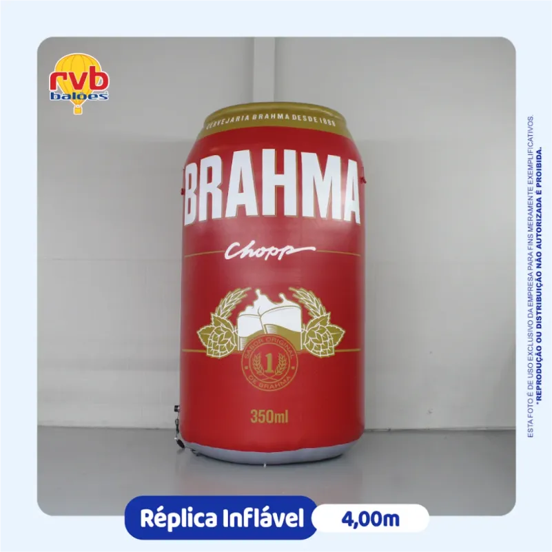 A réplica deve ser fiel ao produto original, mantendo cores, logotipos e proporções. A personalização completa permite criar um inflável único que capture a essência da sua marca.