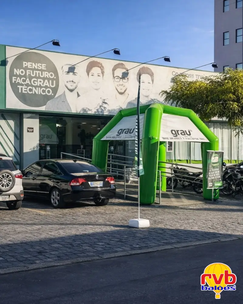 Com sua capacidade de personalização, facilidade de uso e impacto visual inquestionável, ela garante que sua empresa não apenas seja vista, mas lembrada. Conte com a RVB Balões e Infláveis Promocionais, com nossa experiência e qualidade comprovada, para criar a tenda perfeita para sua próxima ação.
