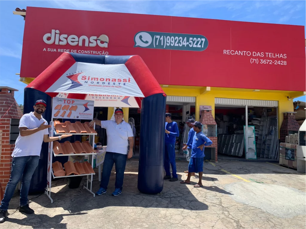 E a tenda inflável, quando bem posicionada, pode ser parte de uma composição estratégica que chama o cliente para dentro.